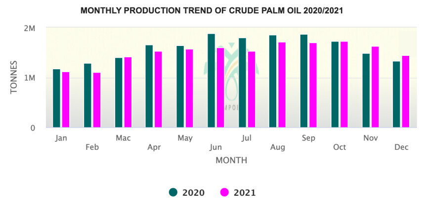 Maleisië heeft in december 1,45 miljoen ton palmolie geproduceerd, een min van 11,2% ten opzichte van een maand eerder. Het productiecijfer van 's werelds op één na grootste producent is eveneens lager dan analisten hadden verwacht. Zij rekenden met een productie van 1,49 miljoen ton. De vele overstromingen in het land liggen ten grondslag aan de daling. Overigens heerst er niet helemaal een mineurstemming, want de productie is nog altijd hoger dan de 1,33 miljoen ton van afgelopen jaar. Voor januari wordt wederom een forse productiedaling verwacht.