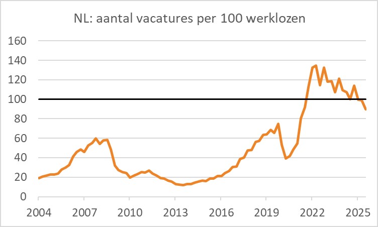 De arbeidsmarkt ontspant. Voor het eerst in vier jaar tijd is het aantal vacatures lager dan het aantal werklozen. Het aantal banen is de laatste maanden niet meer toegenomen, maar de participatiegraad in ons land is hoger dan in vergelijkbare landen. Daarbij zij opgemerkt dat in weinig landen zoveel in deeltijd wordt gewerkt. Sterker nog, wij zijn er wereldkampioen in.