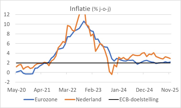 De Nederlandse inflatie daalt verder, het gat met de eurozone vermindert. De daling van de Nederlandse inflatie had in november een brede basis. Dat biedt wellicht enige hoop.