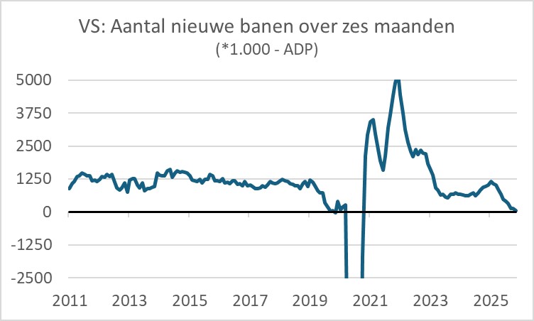 Anders is dat op de arbeidsmarkt. Bedenk dat de Fed naast het realiseren en handhaven van prijsstabiliteit ook als opdracht heeft om maximale werkgelegenheid te realiseren. Door de shutdown van de overheid is de informatievoorziening over de arbeidsmarkt gestokt. Op het moment van schrijven zijn die cijfers nog niet beschikbaar.
