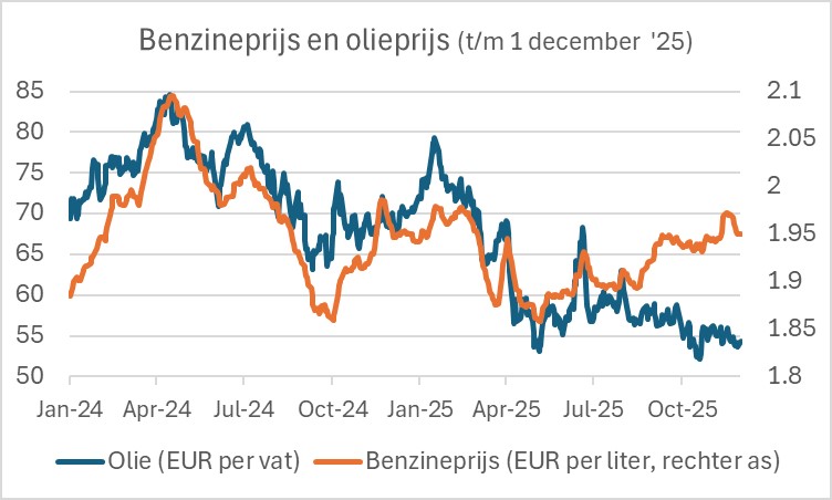In november was 'energie' (inclusief motorbrandstoffen) 0,9% duurder dan een jaar eerder. In oktober was dat nog +2,1%. Deze component maakt ruim 5% uit van het inflatiemandje. Voor volgend jaar wordt een fors overschot aan olie op de wereldmarkt verwacht. Het lijkt me dat de olieprijzen dan nog wat verder zullen dalen. De steeds toenemende beschikbaarheid van gas zal de gasprijs hopelijk eveneens onder druk blijven zetten. De neergaande trend in de energiekosten zal zich daardoor volgend jaar waarschijnlijk voortzetten, ondanks de schaarste op de Europese benzinemarkt en zo geleidelijk bijdragen aan een lagere inflatie. De verhoging van de benzineaccijns met 5,5 cent per 1 januari en 3,6 cent voor diesel werkt in de andere richting. Aangezien in soms wat experimenteer met AI vroeg ik ChatGPT te kwantificeren wat dat met onze inflatie doet. Had ik ook zelf uit kunnen rekenen. ChatGPT moest er relatief lang over nadenken en struinde en groot aantal websites af. Wat dat aan energie gekost heeft, weet ik niet. Uiteindelijk zei ChatGPT dat de verhoging van die accijnzen 0,0648-0,0629%-punt aan onze inflatie zal toevoegen. Dat is het directe effect. Daar komt dan nog wel iets bij omdat de hogere prijzen voor brandstoffen door zullen werken in andere prijzen. Overigens zegt ChatGPT dan andere beprijzing van CO2 ook een opwaarts effect op de inflatie zal hebben, maar dat effect zou heel klein zijn.