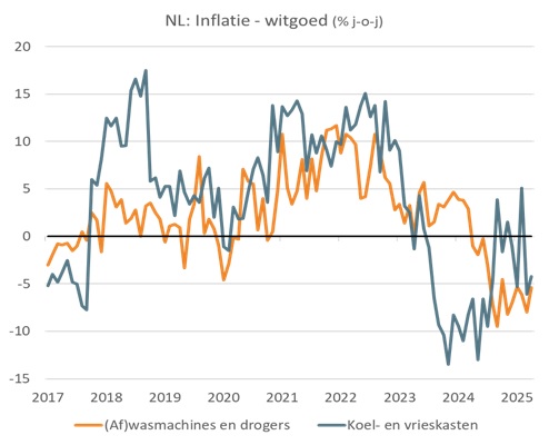 Gelukkig zijn er ook zaken die in absolute zin goedkoper worden, zoals bijvoorbeeld witgoed.