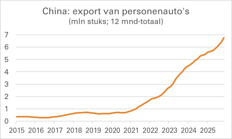 Naar Afrika exporteerde China zelfs 21,8% meer dan een jaar eerder. Ik kan niet precies zien om wat voor goederen dat gaat. Een sector die steeds meer exporteert vanuit China is de autosector. Tot en met 2020 exporteerde China ongeveer een half miljoen personenauto's per jaar. De productie (en export) van auto's is een speerpunt in het Chinese beleid de laatste jaren. Met spectaculair succes. Vier jaar later exporteert China bijna zeven miljoen personenauto's. De mondiale markt voor personenauto's is circa 75 miljoen. Op onze wegen zien we geleidelijk meer Chinese auto's, maar in landen buiten Europa gaat dat ongetwijfeld veel harder. Het kan niet anders dan dat de Duitse autobouwers op die markten heel snel marktaandeel verliezen.