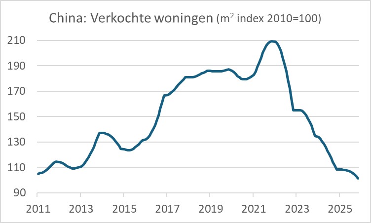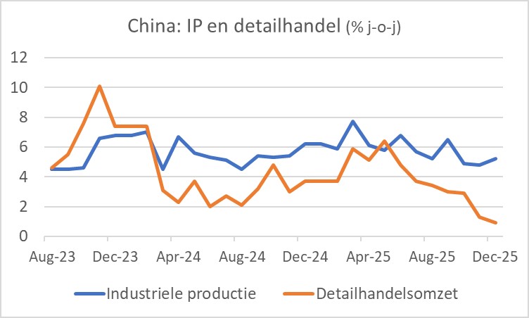 Dat de Chinese economie in 2025 toch wist te groeien, kwam door de groeiende export. Dat zien we ook terug in de industriële productie. Die lag in december 5,2% hoger dan een jaar eerder, tegen 4,8% in november. Als de productie stevig blijft groeien en de consumptie juist niet, moeten de goederen die niet binnenslands verkocht kunnen worden aan het buitenland worden gesleten. Deze groeimotor wordt echter bedreigd door het oprukkende protectionisme. Andere landen accepteren niet dat ze overspoeld worden met gesubsidieerde Chinese producten. Inmiddels heeft de Chinese regering overeenkomsten gesloten die de export van China feitelijk tegenwerken. Maar de Chinese beleidsmakers zullen er alles aan doen om de eigen export op gang te houden.