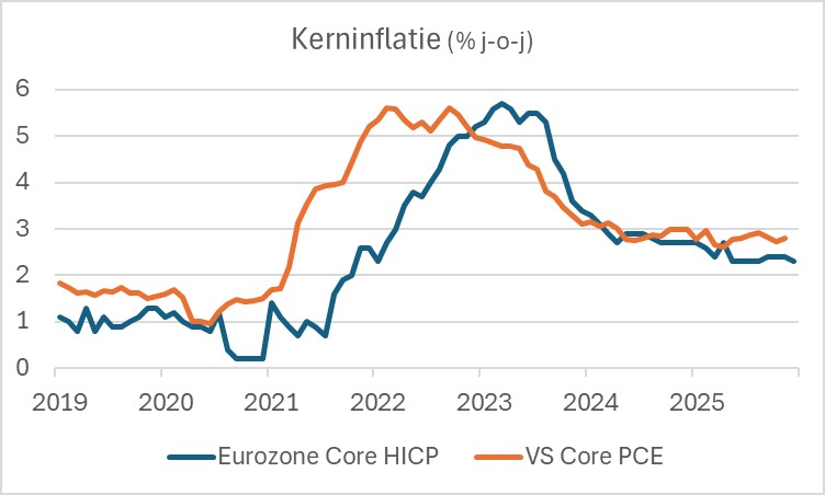 Ook werden deze week cijfers gepubliceerd over de favoriete inflatiemaatstaf van de Fed, de 'Core PCE' en wel voor twee maanden tegelijk, oktober en november. De cijfers suggereren dat het nogal meevalt met de inflatie. Toen Trump zijn importheffingen instelde, was de angst dat de inflatie in de VS daardoor behoorlijk zou oplopen. Tot nog toe is dat dus niet het geval. Economen zijn het oneens over de vraag of consumenten de komende maanden toch nog de rekening gepresenteerd krijgen of niet. Ik vermoed dat het zal meevallen.