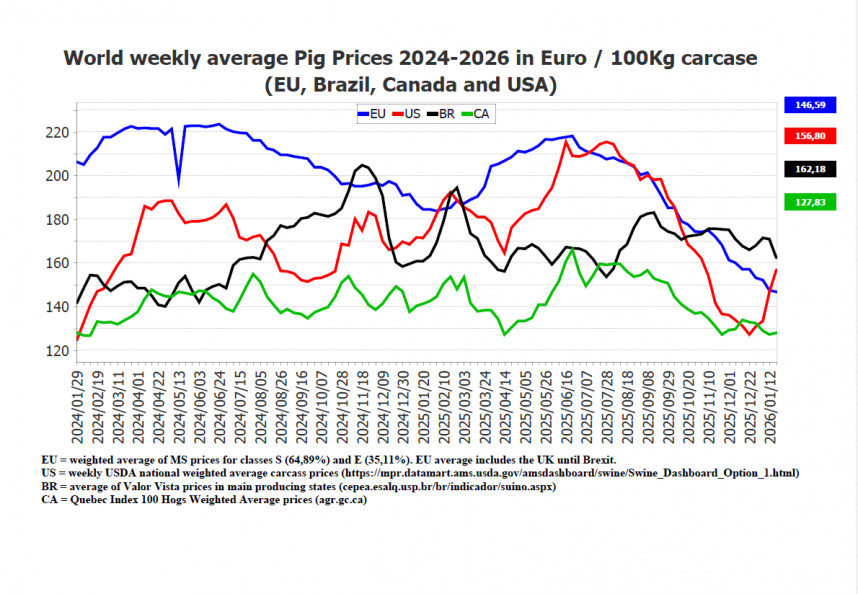Varkensexportprijs EU onder niveau Brazilië en VS